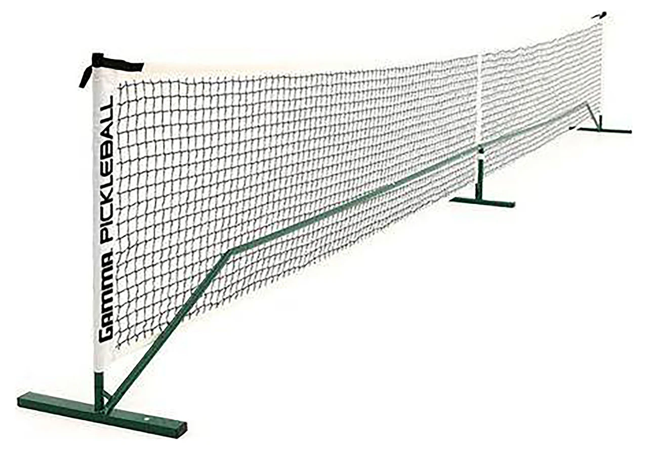 Gamma Pickleball Portable Net is constructed with a powder coated steel tubular frame which is easy to set up and fold down. The braided net has a woven all weather headband.