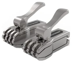 – Two automatic, all metal, swivel cone lock clamp bases, handling any type of racquet. 1/4 of a turn to lock, simply using a thumb.