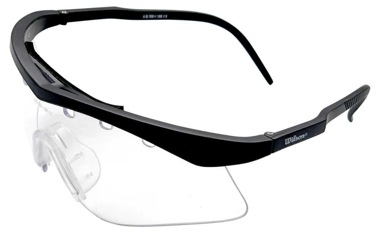 Wilson Jet Squash Eye Protection has a compact design with windshield styling and ventilation holes to prevent fogging.